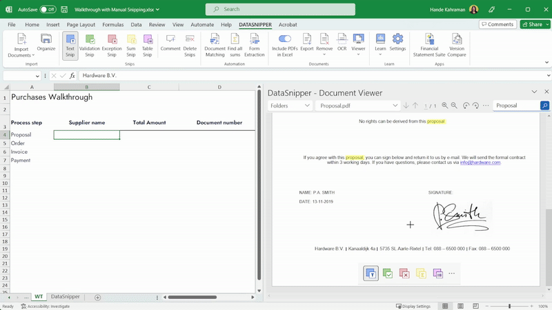 - DataSnipper’s OCR technology can read data from scanned images, documents and even handwritten texts